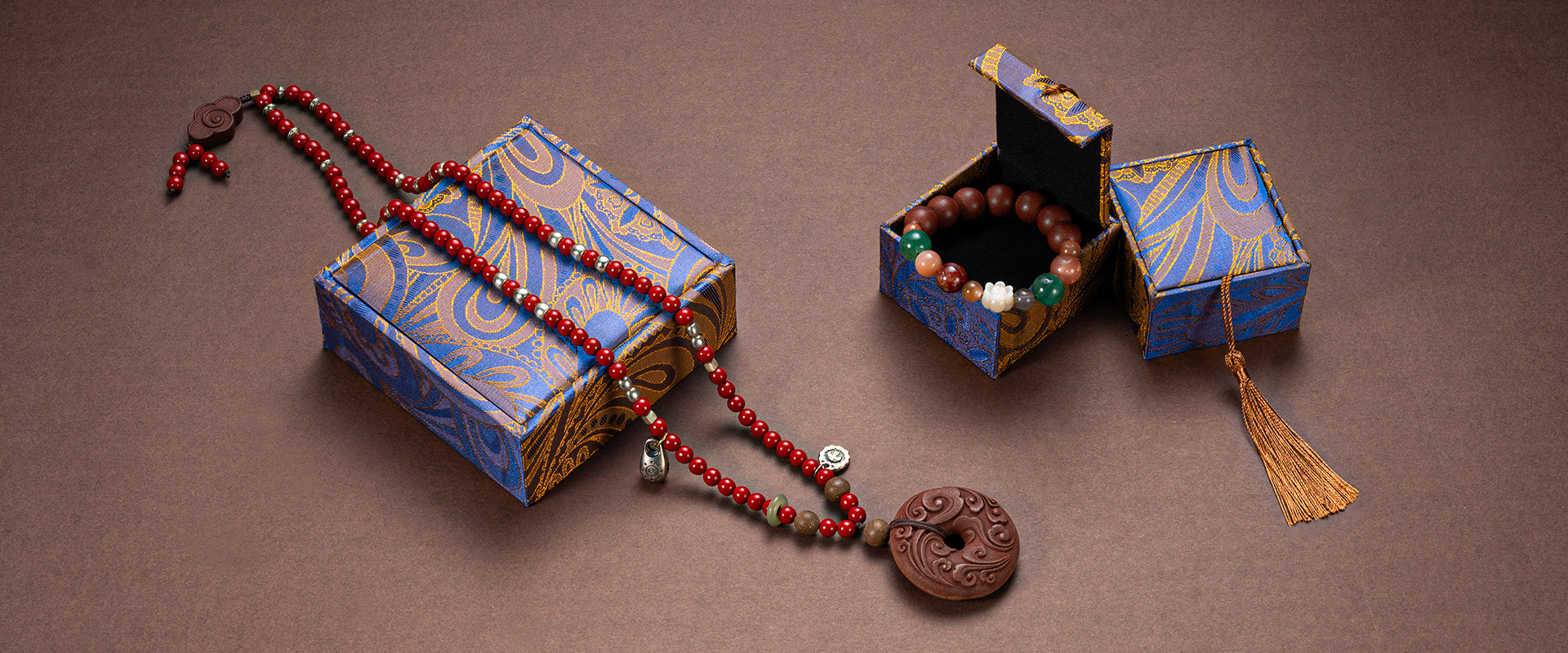 A 500-year-old fragrance once crafted for Chinese emperors and their lineage. The five colors embody the harmony of Wood, Fire, Earth, Metal, and Water, aligning with the body's vital organs. With 108 beads symbolizing freedom from life’s troubles, 36, a graceful one-third, represents clarity, simplicity, and serenity.