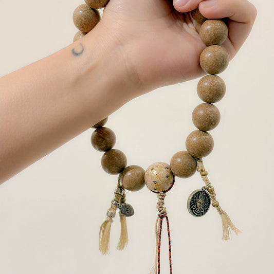 A 500-year-old fragrance once crafted for Chinese emperors and their lineage. The five colors embody the harmony of Wood, Fire, Earth, Metal, and Water, aligning with the body's vital organs. With 108 beads symbolizing freedom from life’s troubles, 36, a graceful one-third, represents clarity, simplicity, and serenity.